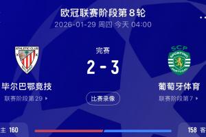 體育資訊01月29日訊 歐冠聯賽階段末輪,葡萄牙體育客場3-2逆轉戰勝畢爾巴鄂,最終排名第七直通歐冠16強。