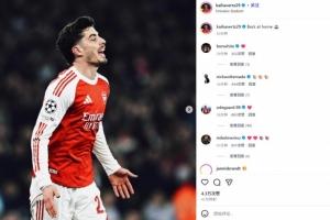 阿森納也在歐冠的聯(lián)賽階段保持8戰(zhàn)全勝。哈弗茨也在賽后通過社媒曬出自己的慶祝照,并配文:“回到主場???”。
