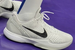 球鞋自由球員庫里今日上腳Nike科比6代 “Protro Sail”配色球鞋,鞋身整體采用骨白色調覆蓋,光澤黑點綴鞋側Swoosh及鞋舌科比 Logo。