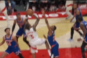 GIF-英格拉姆后仰跳投踢到布里奇斯腹部被吹進(jìn)攻犯規(guī)