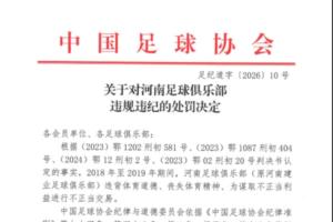 一、扣除河南足球俱樂部2026賽季相應的職業聯賽積分6