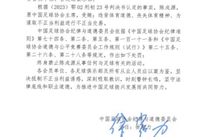 中國足球協會紀律與道德委員會依據《中國足球協會紀律準則》第七十四條、第二條、第五條、第一百一十一條和《中國足球協會道德與公平競賽委員會工作規則(試行)》第二十五條、第二十六條、第二十八條等規定,作出如下處罰: