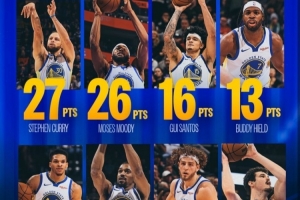 賽后勇士發布數據海報:本場比賽八人得分上雙!