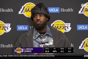 體育資訊1月29日訊 今日,湖人99-129客場不敵騎士。賽后,湖人前鋒詹姆斯接受了采訪。