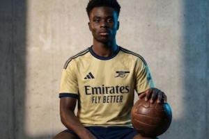 阿森納2026-27賽季第二客場(chǎng)球衣以淺黃色為主色調(diào),海軍藍(lán)為輔助色,用于標(biāo)識(shí)、鑲邊及圖案細(xì)節(jié)。