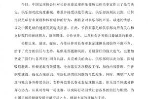 足協(xié)認(rèn)定,2017年至2018年期間,長春亞泰足球俱樂部違背體育道德、喪失體育精神、為謀取不正當(dāng)利益進(jìn)行不正當(dāng)交易。