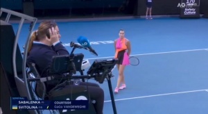 第三局,主裁認(rèn)為薩巴倫卡在擊球過程中喊叫聲干擾到了斯維托麗娜,所以把這分直接給了對手。薩巴倫卡申請視頻回放挑戰(zhàn),但也沒有成功。