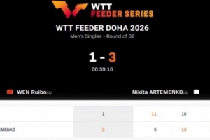 體育資訊1月29日訊 2026WTT支線賽多哈站男單,溫瑞博1-3不敵中立運(yùn)動(dòng)員尼基塔,止步首輪。