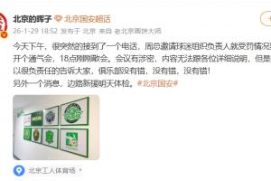 博主北京的暉子發(fā)文:今天下午,很突然的接到了一個電話,周總邀請球迷組織負責人就受罰情況到工體開個通氣會,18點剛剛散會。會議有涉密,內容無法跟各位詳細說明,但是我可以很負責任的告訴大家,俱樂部沒有錯,沒有錯,沒有錯!