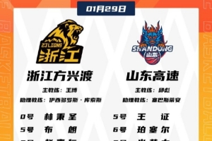 體育資訊1月29日訊 今晚19:35,CBA常規賽焦點戰,廣廈對陣山東。賽前雙方公布了本場比賽的大名單。
