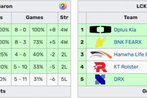 目前LCK CUP的積分榜如下: