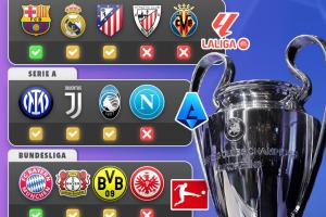 盡管6支英格蘭俱樂部中有5支在歐冠聯賽階段位列前8名,但西班牙、意大利、德國和法國俱樂部則明顯更為艱難。