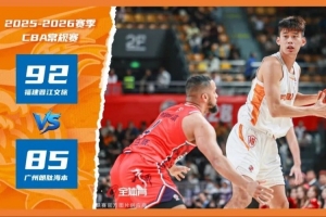 2025-2026賽季CBA聯賽常規賽第二十一輪展開較量,福建晉江文旅男籃客場挑戰廣州朗肽海本男籃,主隊憑借開局的強勢發揮建立起大比分領先,盡管后續被對手持續追分,末節更是被廣州朗肽海本男籃將分差迫近至2分,但主隊將士們頂住巨大壓力,外線接連命中關鍵三分澆滅對手反撲勢頭,最終以92-85拿下最終的勝利。四節比分分別是:30-12,22-29,21-22,19-22(福建晉江文旅男籃在前)。