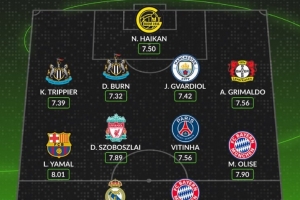 體育資訊1月29日訊 歐冠聯(lián)賽階段戰(zhàn)罷,數據網站Whoscored也評選出聯(lián)賽階段場均評分最高陣容,具體如下: