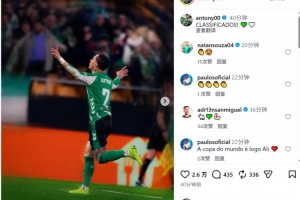 安東尼賽后更新社媒動態,曬出慶祝進球的照片,配文:“晉級!”