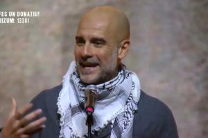 這位西班牙人在曼城的歐冠比賽一天后,回到了自己的祖國,并作為演講嘉賓出席了在圣喬治宮舉行的"Act x Palestine"慈善活動。瓜迪奧拉身披黑白相間的巴勒斯坦頭巾,聲援在加沙戰爭中失去父母的兒童。