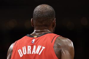 第三節(jié),火箭球星杜蘭特火力全開,單節(jié)9中6獨(dú)得16分,三節(jié)打完21投11中,三分7中2、罰球4中4砍下28分4籃板3助攻,正負(fù)值+9。