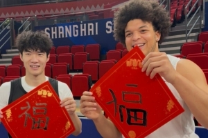 賽前,上海球員偰李永煒和外援洛夫頓用毛筆寫福字。賽季至今,上海16勝4負位列聯賽第三位。