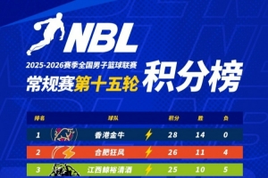 【積分榜】2025-2026賽季NBL常規(guī)賽積分榜(截至第十五輪結束)