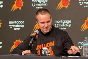 體育資訊1月30日訊 太陽114-96輕取活塞。賽后,太陽主帥奧特穿著印有“狄龍大反派”字樣的定制T恤接受媒體采訪。太陽本場安排發放了5000件印有“狄龍大反派”的T恤,狄龍本場得到40分,刷新個人生涯新高。