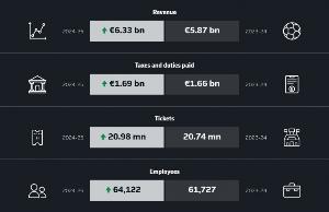 2、2024/25賽季是德甲俱樂部首次實現總收入超過50億歐元,比2023/24賽季的紀錄增長了3.208億歐元,增幅達6.7%;