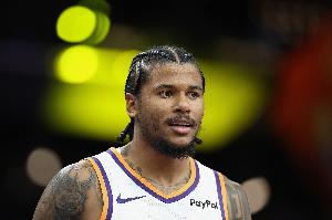 本場(chǎng)比賽,太陽球員杰倫·格林表現(xiàn)還可以,不過在下半場(chǎng)搶板背部重摔倒地險(xiǎn)些受傷,替補(bǔ)打了16分鐘,投籃9中4,三分球7中3,拿到11分4籃板1助攻1搶斷的數(shù)據(jù),正負(fù)值+7。