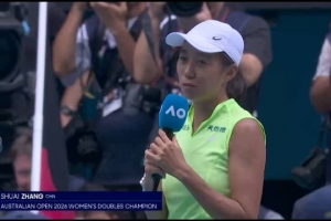 體育資訊1月31日訊 澳網女雙決賽,4號種子張帥/梅爾滕斯擊敗達尼麗娜/克魯尼奇,奪得搭檔以來的首座大滿貫女雙頭銜。在澳網女雙奪冠演講中張帥感謝了搭檔的選擇和鄭潔的幫助。