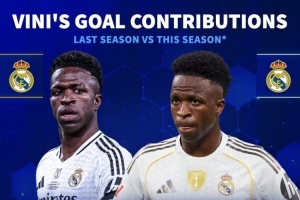 體育資訊11月11日訊 德國轉(zhuǎn)會(huì)市場(chǎng)統(tǒng)計(jì)了維尼修斯上賽季和本賽季的數(shù)據(jù),這位皇馬前鋒的效率有所下滑。