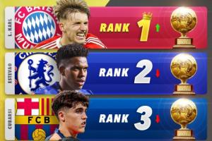 體育資訊01月31日訊 Score90列出了2026年金童獎最新排名預測,卡爾居首,埃斯特旺、庫巴西分列二三。其中,拜仁小將卡爾距上次排名上升了兩位,來到榜首位置。