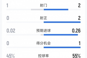 體育資訊1月31日訊 本輪英超阿森納對(duì)陣?yán)澛?lián)上半場(chǎng)戰(zhàn)罷,槍手暫時(shí)2-0領(lǐng)先,以下為雙方半場(chǎng)數(shù)據(jù)對(duì)比: