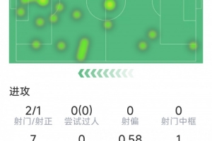 體育資訊2月1日訊 在本輪英超阿森納對利茲聯的比賽中,約克雷斯破門,以下為他在本場數據: