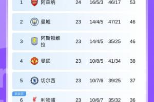 體育資訊2月1日訊 英超第24輪,阿森納客場4-0戰勝利茲聯終結3輪不勝,先賽7分領跑,最新積分榜如下: