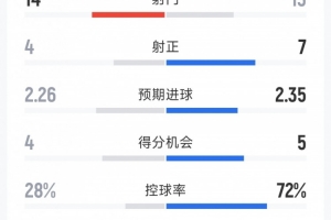 體育資訊2月1日訊 在本輪德甲,拜仁2-2戰平漢堡,以下為雙方全場數據對比: