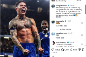 此役是恩佐為切爾西出戰的第150場比賽,恩佐社媒曬出慶祝的照片,并寫道:“多么瘋狂的方式來慶祝我為這家俱樂部出戰的第150場比賽啊!在主場與我們的球迷一起取得精彩勝利。”