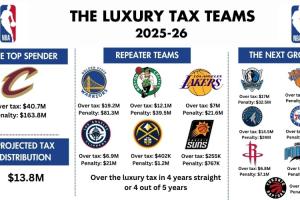 體育資訊02月01日訊 ESPN知名薪資專家Bobby Marks更新動態,曬出一張2025-26賽季NBA球隊奢侈稅情況。