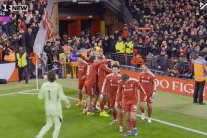 科納特經歷父親離世的巨大挫折后,本場復出破門,利物浦全隊向科納特致以安慰。阿利松也穿越整個球場,過來擁抱科納特。