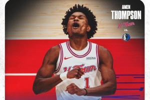賽后,火箭官方曬出阿門·湯普森本場的數據海報,配文寫道:“在休斯敦表現出色,幾乎拿下了三雙數據!”