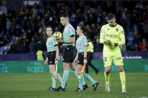 體育資訊2月1日訊 西甲第22輪比賽,萊萬特在主場和馬競互交白卷。本場比賽,兩名女性裁判出現在裁判團隊中,兩人均是擔任助理裁判。