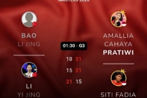 體育資訊2月1日訊 2026年泰國羽毛球大師賽女雙決賽,鮑驪婧/李怡婧1-2不敵阿瑪莉亞/拉馬丹蒂,無緣女雙冠軍。