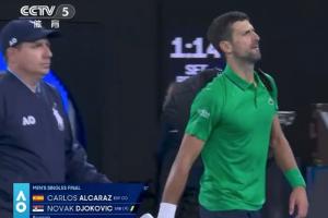 體育資訊02月01日訊 澳網(wǎng)男單決賽,輸?shù)舻诙P后,德約科維奇背著包回更衣室,隨后又返回賽場。