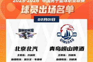 體育資訊2月1日訊 19:35北京將在主場(chǎng)迎戰(zhàn)青島,賽前大名單出爐。