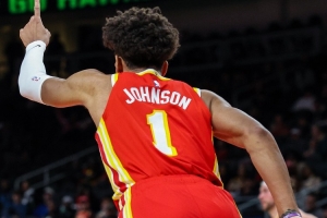 本場比賽,杰倫·約翰遜出戰37分鐘,投籃29中12,三分球6中3,罰球8中6,拿到33分12籃板10助攻3搶斷的數據。