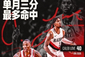 開(kāi)拓者官微寫(xiě)道:“來(lái)看看樂(lè)福在一月的(40記)三分表現(xiàn)?? 他在一月單月三分命中數(shù)排名開(kāi)拓者隊(duì)史新秀第二位,僅次于達(dá)米安·利拉德(42記)”