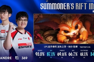 在歷史LPL選手使用納爾(場(chǎng)次不低于20場(chǎng))勝率排行榜中,369 位居第二,F(xiàn)landre位居第六;