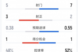 體育資訊2月1日訊 本輪英超,曼聯半場戰罷1-0領先富勒姆,以下為雙方半場數據對比: