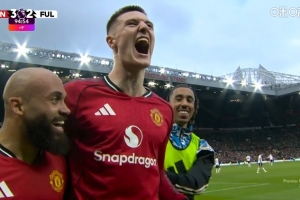 曼聯(lián)主場3-2絕殺富勒姆,比賽第94分鐘,替補(bǔ)上場的舍什科送出絕殺。