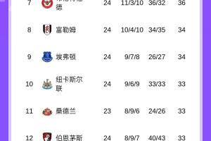 體育資訊2月2日訊 英超第24輪,熱刺2-2戰平曼城,最新的積分榜情況如下↓