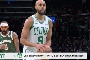 截至賽前,懷特本賽季共進(jìn)130個(gè)三分,送出68個(gè)蓋帽。