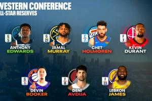 西部全明星替補:華子、切特、穆雷、布克、阿夫迪亞、杜蘭特、詹姆斯。