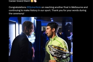 “同時也祝賀德約科維奇在墨爾本再次殺入決賽,并繼續在我們的運動中創造歷史。感謝你在頒獎儀式上說的那些話!”
